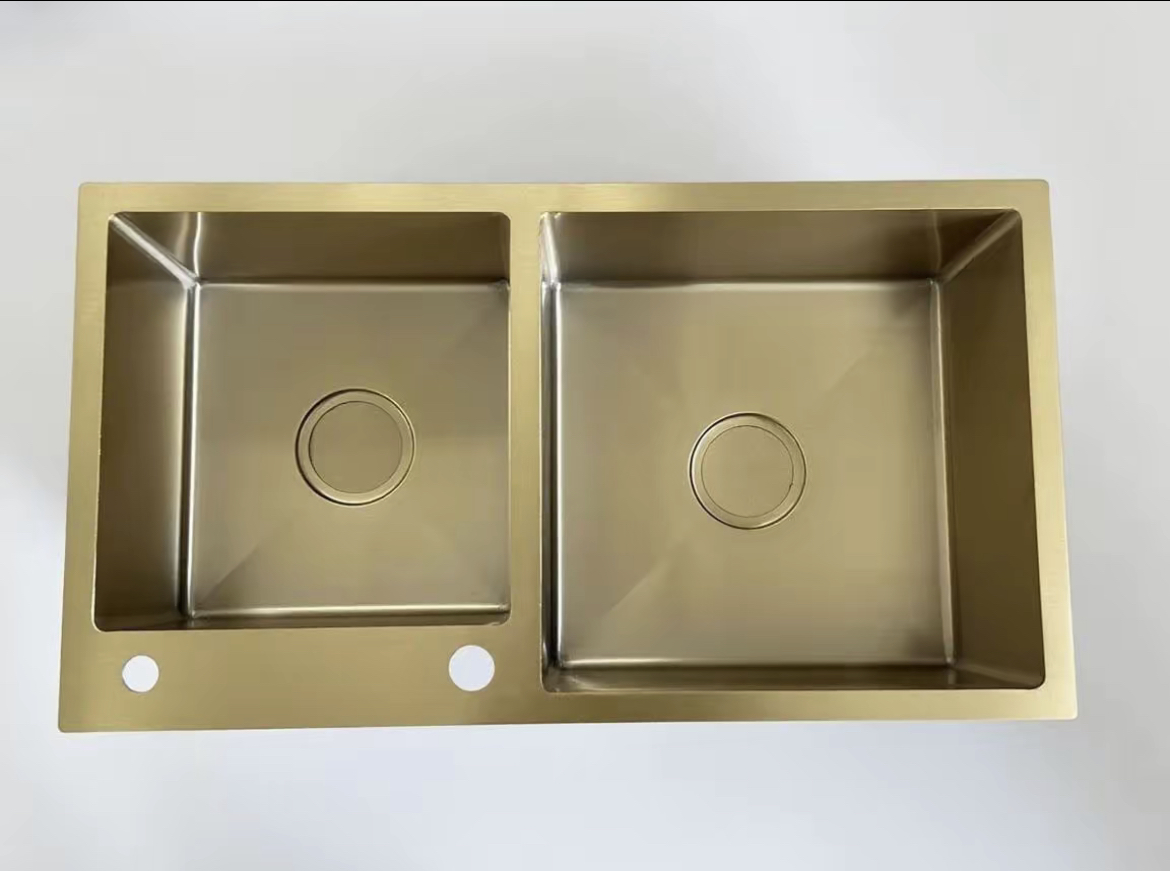 | Pia de Cozinha com Cuba Dupla e Torneira de Arco Alto | 900×550×230mm | Saída de água em ângulo amplo |